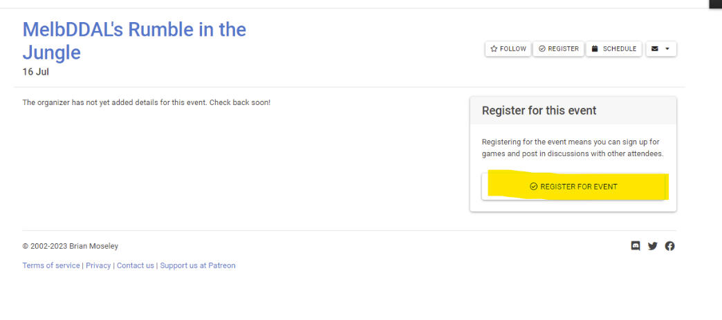 Go to the MelbDDAL's Rumble in the Jungle event on Warhorn & click [Register for Event] on the right side of the page.[STEP TWO] Make sure to include all information.